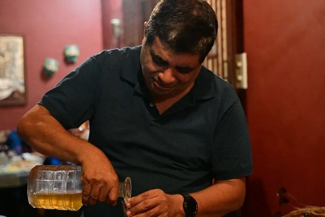 Franchissez les portes grinçantes d’une maison indo-portugaise centenaire dans le quartier de Fontainhas à Goa pour une dégustation intime avec M. Aires Andrade. Goûtez des vins uniques de Goa accompagnés de snacks maison, écoutez des histoires familiales et laissez-vous porter par le rythme paisible de ce patrimoine vivant. Plus qu’une dégustation, une plongée dans l’histoire pour un après-midi inoubliable.