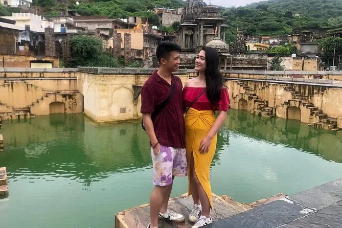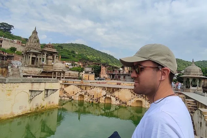 On s’est faufilés dans des ruelles étroites (je jure que notre chauffeur a des nerfs d’acier) jusqu’à ce que le puits à degrés apparaisse, calme et géométrique, à part deux enfants qui lançaient des cailloux au fond. Notre guide expliquait que ces marches étaient vitales pendant les étés arides — jamais je n’aurais cru qu’un réservoir d’eau puisse être aussi beau et complexe. Le Jal Mahal scintillait sur le lac Man Sagar, presque irréel sous la chaleur de midi ; on est restés là un moment, à regarder les oiseaux virevolter et écouter au loin les klaxons de la ville.