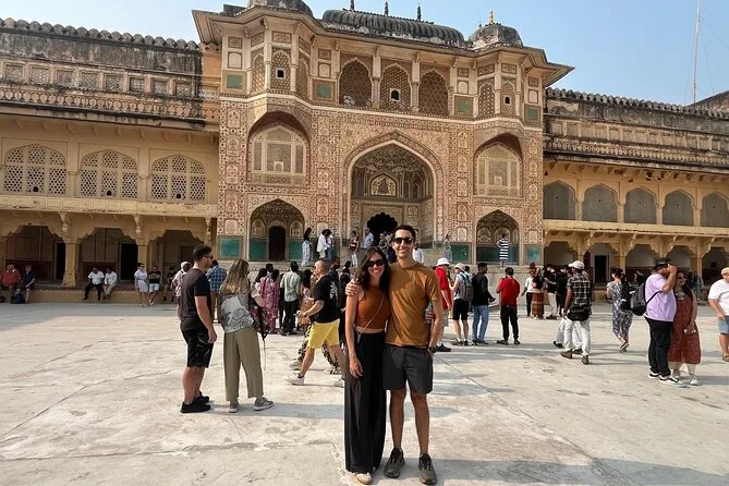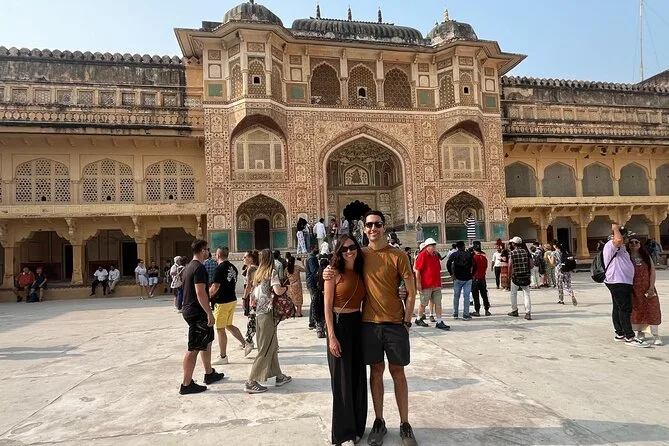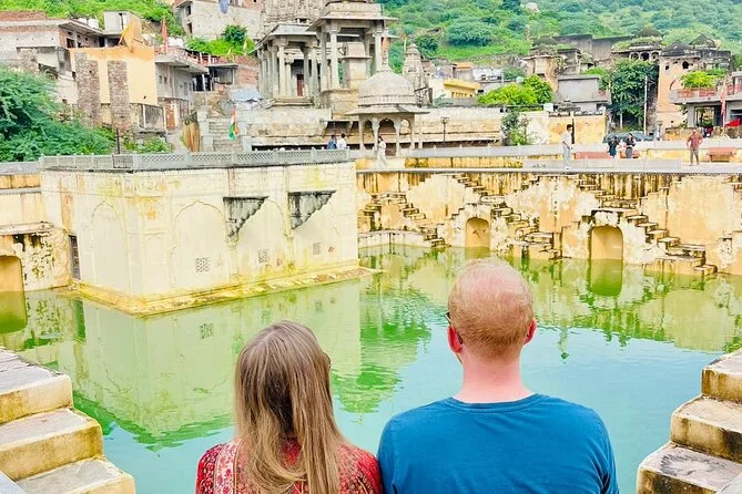 Parcourez les palais et puits à degrés de Jaipur avec un guide local qui fait revivre chaque histoire — des salles résonnantes du Fort Amber aux recoins paisibles de Gaitor Ki Chhatriyan. Profitez d’un déjeuner (optionnel), d’arrêts flexibles et d’une prise en charge à l’hôtel en voiture privée. Cette excursion vous fait ressentir à la fois la grandeur et le quotidien de Jaipur — vous repartirez peut-être avec une fenêtre préférée au Hawa Mahal.