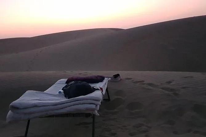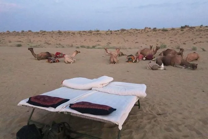 Plongez dans le côté sauvage du Rajasthan avec ce safari nocturne au départ de Jaisalmer — explorez les ruines fantômes de Kuldhara avec un guide local, admirez le coucher de soleil sur les dunes dorées, partagez un dîner au coin du feu sous les étoiles, puis réveillez-vous entouré de sable silencieux. Si vous cherchez une expérience authentique (et que le sable ne vous fait pas peur), c’est ici que ça se passe.