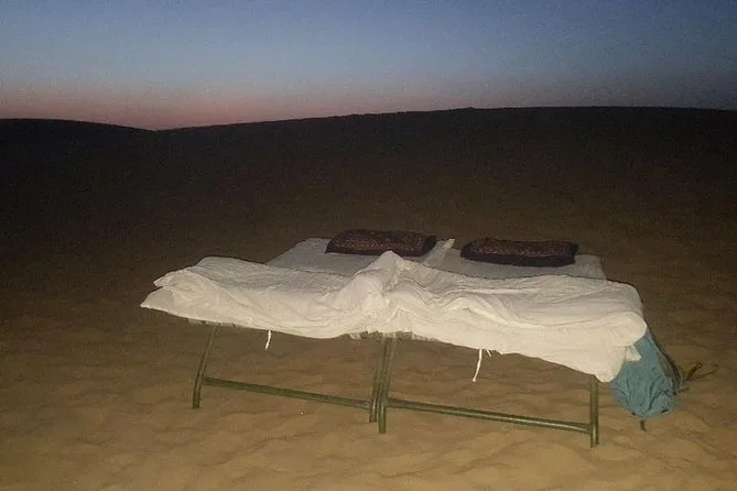 Votre journée comprend la prise en charge et le retour dans Jaisalmer en véhicule climatisé, l’entrée guidée dans des sites patrimoniaux comme Kuldhara, tous les billets d’entrée inclus, ainsi que le déjeuner et le petit-déjeuner servis au camp avant le retour — vous n’avez donc rien à gérer côté logistique ou repas dans les dunes.