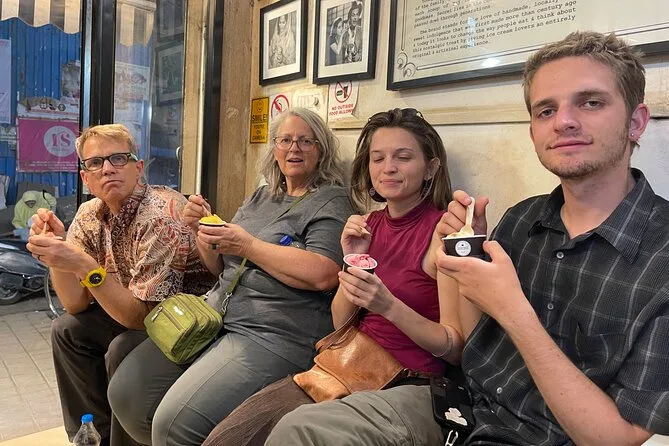 Votre soirée comprend des snacks à chaque arrêt — bhel puri à Chowpatty, pav bhaji au centre de Mumbai, dosa et chicken tikka au Chor Bazaar — et une glace artisanale pour finir. De l’eau en bouteille est fournie tout au long du tour, guidé par un local sympathique. La prise en charge et le retour à l’hôtel sont inclus pour les réservations privées ; sinon, le rendez-vous est simple près de la station Churchgate.