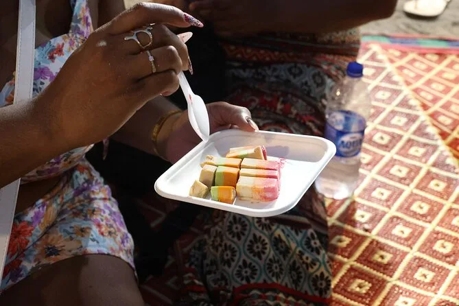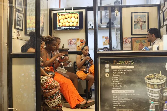 Embarquez dans le train local de Mumbai au coucher du soleil vers Chowpatty Beach pour goûter des snacks typiques avec les locaux, puis plongez dans le tumulte coloré du marché Bhuleshwar. Votre guide vous mènera à travers temples et étals (pani puri inclus), avant de partager une glace artisanale sous les néons — le ventre plein, l’envie d’y retourner.