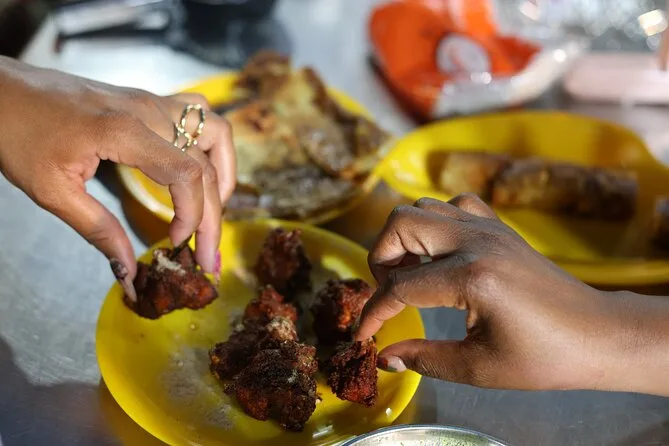 Votre soirée comprend tous les transports entre les étapes (train local et taxi partagé), un guide local expert qui raconte l’histoire de chaque plat, une large sélection de street food classique de Mumbai, de l’entrée jusqu’à la glace artisanale à Bori Mohalla, ainsi que de l’eau en bouteille et des serviettes pour les moments un peu salissants.