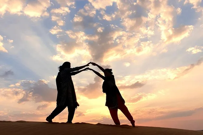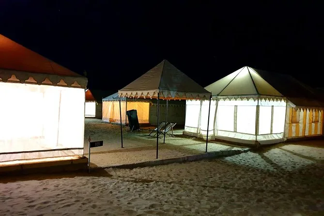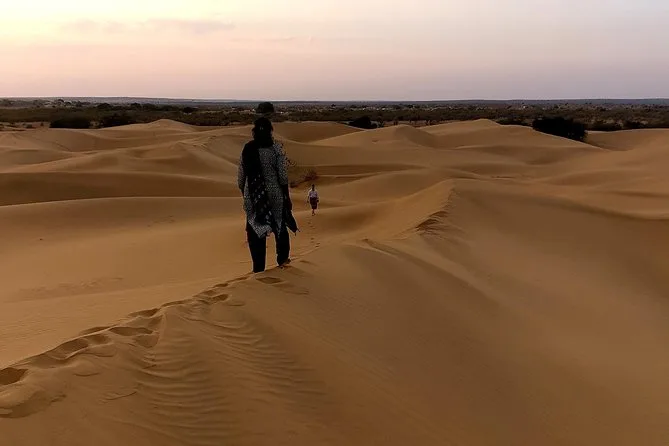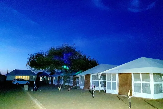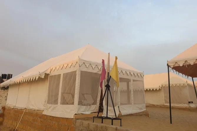 Votre séjour comprend la prise en charge à Jaisalmer en voiture ou taxi climatisé ; hébergement en tente suisse de luxe privée (jamais partagée) ; safari à dos de chameau ; balade en jeep sur les dunes ; tous les repas (déjeuner, dîner autour du feu avec musique live, petit-déjeuner) ; visites guidées de la maison de poterie et du Desert National Park ; ainsi que beaucoup de temps libre pour vous détendre ou explorer à votre rythme.