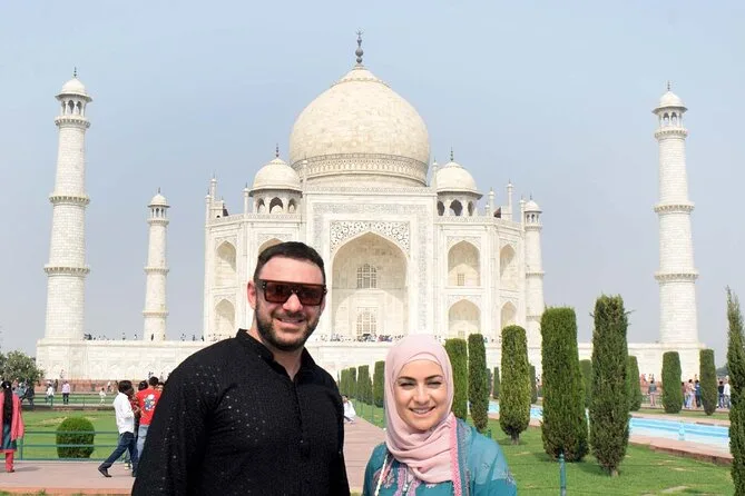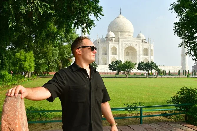 Votre journée comprend un transfert privé porte-à-porte depuis Delhi, Agra ou Jaipur en voiture climatisée, de l’eau en bouteille pour la route, les billets coupe-file (si sélectionnés), un guide local agréé au Taj Mahal et au Fort d’Agra, ainsi qu’un petit-déjeuner buffet dans un hôtel 5 étoiles avant un retour confortable à votre point de chute.