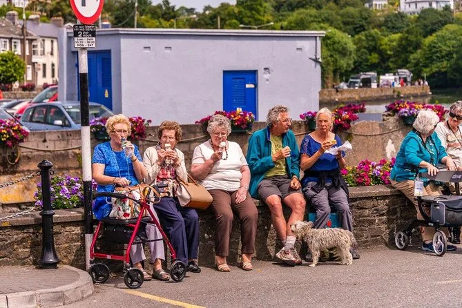 Le trajet à travers Cork City a filé à toute vitesse : des bâtiments en briques rouges, des passants qui entraient dans les boutiques près du English Market, Pat qui nous montrait la brasserie Murphy’s (« la vraie », disait-il). J’ai aimé la façon dont il mêlait l’histoire à la vie quotidienne — comment les Vikings ont influencé les noms des rues ou quel pub prétend être le plus ancien (il ne voulait pas prendre parti). À l’heure du déjeuner, nous étions à Kinsale, où tout est plus coloré — maisons pastel, bateaux qui tanguent dans le port, mouettes qui se chamaillent autour des frites. On a choisi un petit resto pour une soupe de poisson ; je repense encore à ce bouillon relevé. Se balader dans les ruelles de Kinsale était un vrai plaisir après toutes ces marches au château.