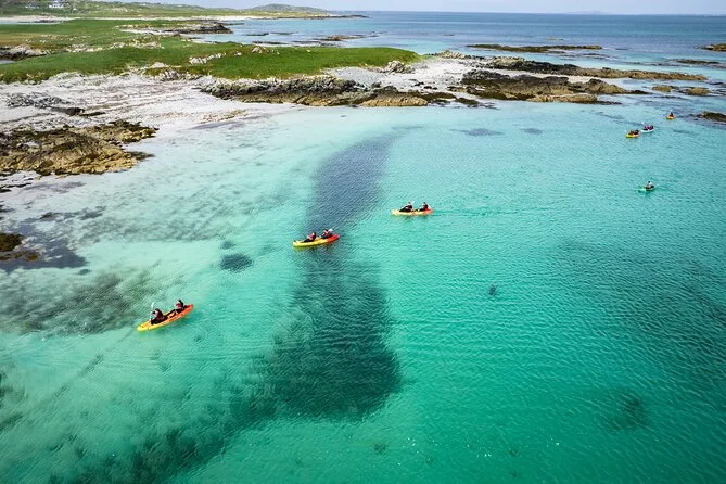 Explorez la côte sauvage du Connemara en kayak avec un guide local, en naviguant entre criques cachées et plages de sable blanc. Observez les phoques au soleil près de leur colonie et écoutez des histoires sur la vie marine en glissant sur l’eau claire de l’Atlantique. Combinaison, vestiaires et guide expert inclus — une matinée ou un après-midi qui vous transforme en douceur.