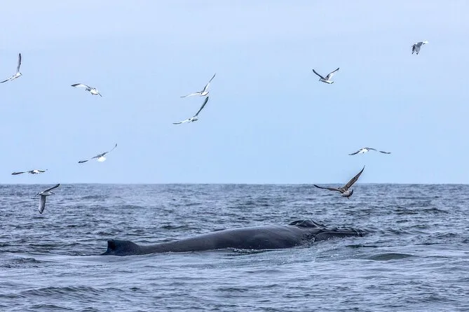 Les observations varient selon les jours ; dauphins, baleines, phoques et oiseaux marins sont possibles mais non garanties.