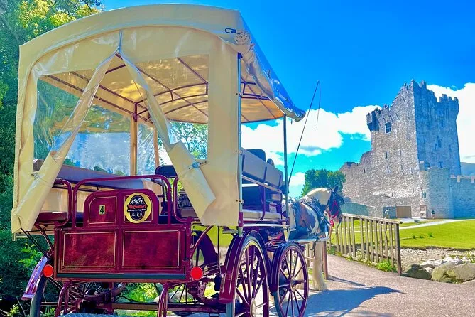 Montez à bord d’un jaunting car traditionnel pour traverser les parcs de Killarney, guidé par un local qui partage histoires et légendes sur des sentiers cachés interdits aux voitures. Arrêts photos au Ross Castle et au bord des lacs (et peut-être nourrir Molly si vous avez une pomme). Couvertures en laine et humour irlandais garantis, avec un moment thé à Deenagh Lodge en fin de balade.