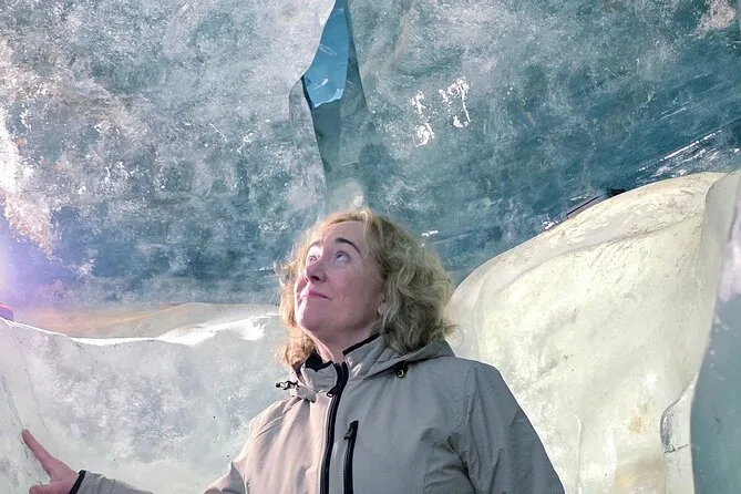 Entrer dans la grotte de glace était plus calme que je ne l’imaginais. L’air sentait la pureté, un peu métallique, et mes bottes crissaient sur le sol gelé. Les murs étaient zébrés de lignes noires, vestiges de cendres volcaniques anciennes — j’ai passé la main dessus juste parce que je pouvais. Il faisait plus froid à l’intérieur, mais pas glacial, plutôt comme dans un grand frigo avec une lumière bleutée filtrant à travers la glace épaisse au-dessus de nos têtes. Tout le monde voulait prendre des photos en même temps, mais honnêtement, aucune ne rendait vraiment l’atmosphère unique du lieu.