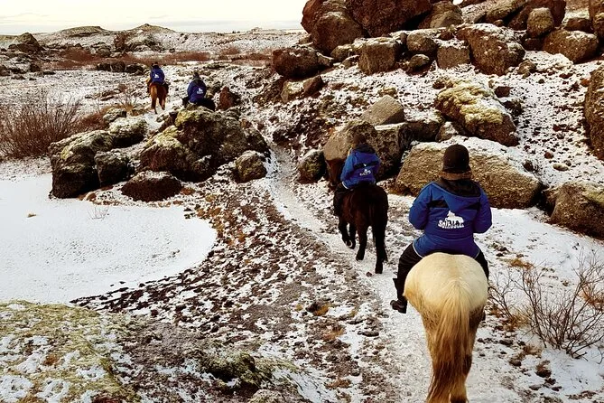 Votre journée comprend la prise en charge à l’hôtel à Reykjavik, la mise à disposition d’une tenue imperméable ou d’une combinaison d’hiver chaude ainsi qu’un casque pour votre sécurité, un accompagnement amical pendant votre balade à cheval sur les champs de lave près du lac Rauðavatn, et un café ou thé à la fin avant le retour en ville.