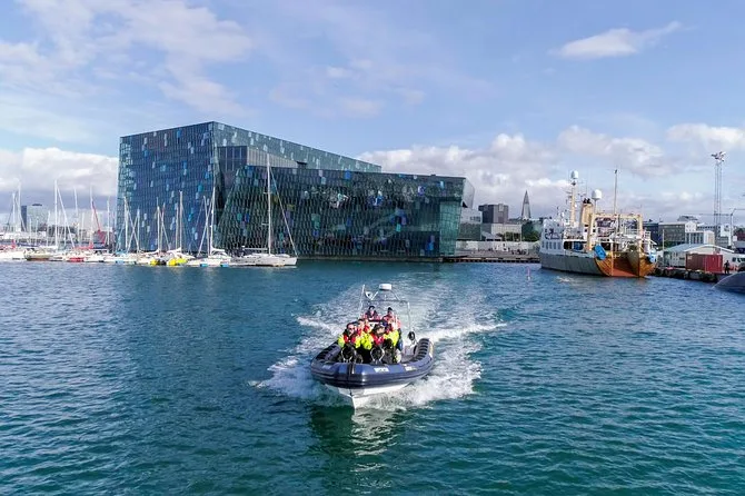Votre sortie comprend jusqu’à deux heures à bord d’un speedboat RIB de luxe 12 places au départ de Reykjavik, avec un guide anglophone qui vous racontera tout sur les baleines et la faune de la baie de Faxaflói. Vous recevrez un gilet de sauvetage, une combinaison imperméable chaude, des gants et des lunettes pour rester au sec même si les embruns volent.