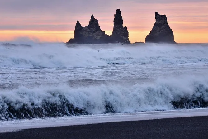 Vous serez au plus près des icebergs flottants du lagon de Jokulsarlon et sentirez le sable noir craquer sous vos pas sur la plage de diamants. Réchauffez-vous avec une soupe d’agneau à Vík et laissez la brume de Seljalandsfoss caresser votre visage — le tout avec les histoires de votre guide local et une prise en charge facile depuis Reykjavik.