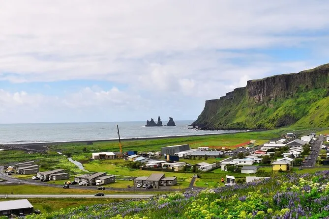 La visite s’arrête à Vík pour le déjeuner où vous pouvez acheter des plats locaux comme la soupe d’agneau ou une pizza ; le repas n’est pas inclus dans le prix.