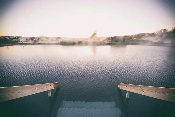 Le déjeuner s’est déroulé dans un petit resto chaleureux près de Flúðir (je n’ai jamais su son nom), où tout avait ce goût de fait maison et de réconfort après le froid. Puis, direction la Secret Lagoon. La vapeur qui s’échappait de cette piscine naturelle est presque hypnotique quand on est gelé jusqu’aux os. Les locaux flottaient en discutant doucement ; quelqu’un m’a tendu une serviette avec un clin d’œil quand j’ai réalisé que j’avais oublié la mienne (on peut aussi en louer sur place). Des heures plus tard, sur le chemin du retour vers Reykjavik, ma peau sentait encore légèrement les minéraux, les cheveux humides et le cœur un peu rempli de cette magie que seul le voyage sait offrir.