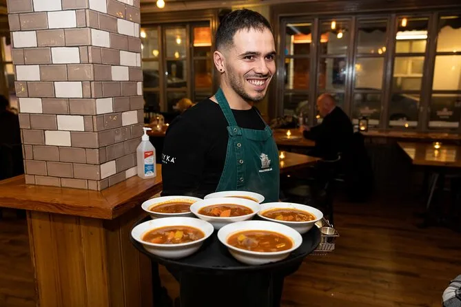 Votre journée comprend toutes les dégustations — soupe de fruits de mer au port, hot-dog traditionnel à l’agneau d’un stand emblématique, soupe d’agneau et snacks uniques — ainsi que l’entrée dans chaque lieu. Un guide professionnel vous accompagne à pied entre les arrêts dans le centre de Reykjavik, avant de terminer au restaurant Dass près de l’église Hallgrimskirkja pour la dégustation de requin fermenté et une boisson islandaise de votre choix avant de vous dire au revoir.