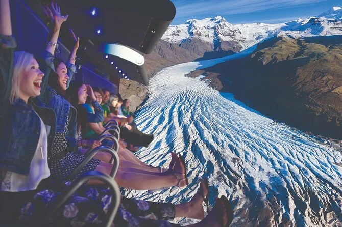 On a repris la route vers Reykjavik pour l’expérience Fly Over Iceland (l’horaire est flexible si vous voulez changer de jour). La partie avant le vol était étonnamment sympa — un conteur nous a plongés dans d’anciennes légendes, avec même un troll nommé Sú Vitra (je ne sais toujours pas si elle était réelle ou juste excellente dans son rôle). Une fois le vol lancé, on a vraiment l’impression de survoler des cascades et des plages de sable noir, le vent sur le visage — ils ajoutent même des odeurs et de la brume, pas juste un écran. Un peu kitsch peut-être, mais franchement ? J’ai souri comme un gamin tout le long.