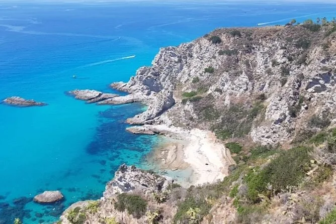 Embarquez avec un skipper local le long de la Costa degli Dei en Calabre, avec des arrêts baignade dans des criques cachées entre Capo Vaticano et Tropea. Le matériel de snorkeling est fourni pour observer les poissons dans une eau limpide ou simplement flotter paisiblement au pied de falaises anciennes. Rires, cinq arrêts uniques et une côte sauvage inaccessible par la route vous attendent.