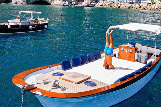 Embarquez pour une balade privée en bateau à Capri avec un équipage local qui vous accueille comme des amis—nagez dans une eau limpide, trinquez au prosecco sous l’arche des Faraglioni, écoutez des histoires d’insulaires, et repartez avec du sable plein les pieds et des souvenirs plein la tête.