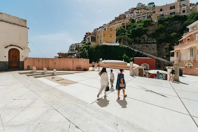 Sur le chemin de Positano, on a passé Praiano et Furore — Giulia nous a montré des petits détails sur chaque village mais honnêtement, j’étais surtout fascinée par les falaises qui défilaient, en essayant de ne pas renverser mon verre. À Positano, on a environ une heure et demie, ce qui ne suffit pas pour tout voir mais c’est parfait pour se perdre un peu. Les maisons sont empilées comme si quelqu’un avait laissé tomber une boîte de crayons pastel en haut de la colline. On s’est perdus dans une ruelle et on a fini par acheter du limoncello chez une dame qui nous a forcés à goûter sa version maison (ça envoie !). Au retour, tout le monde était plus calme — fatigué par le soleil ou juste rassasié de toutes ces couleurs et ces sons. Je repense encore à cette vue en quittant Positano, vraiment.