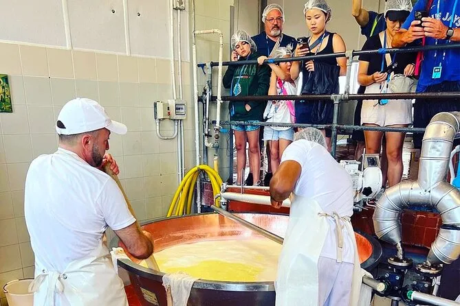 Votre journée comprend la prise en charge et le retour à Parme en véhicule climatisé, les entrées chez chaque producteur avec visites guidées, ainsi que de généreuses dégustations de Parmigiano Reggiano accompagné de vin local, de jambon de Parme avec vin, et de vinaigre balsamique traditionnel à l’Acetaia Giusti avant de rentrer en soirée.