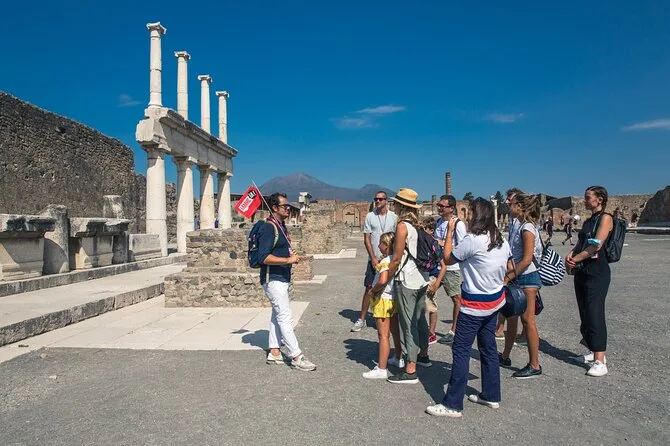 Votre journée comprend le transport aller-retour depuis le centre de Sorrente en véhicule climatisé, les billets officiels avec accès coupe-file au site archéologique de Pompéi, un guide local expert tout au long de la visite (avec casques pour les grands groupes), ainsi que beaucoup de temps pour explorer des sites emblématiques comme la Via dell’Abbondanza et les thermes Stabies avant de retourner ensemble à Sorrente.