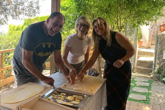 Vivez un moment unique dans la cuisine d’une famille de Praiano : apprenez à faire des pâtes fraîches et des entrées locales avec leurs produits du jardin, savourez leur vin maison et partagez des histoires autour de la table. Rires, saveurs authentiques et accueil chaleureux garantis — même si vos pâtes sont un peu tordues.