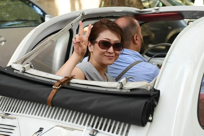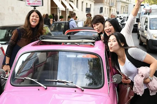 Votre journée comprend la prise en charge depuis les hôtels situés hors de la zone ZTL du centre de Rome, un chauffeur local sympathique au volant de votre Fiat 500 vintage, des rafraîchissements légers (espresso ou cappuccino), et beaucoup de temps pour prendre des photos aux endroits emblématiques avec votre propre appareil avant de revenir au point de départ.