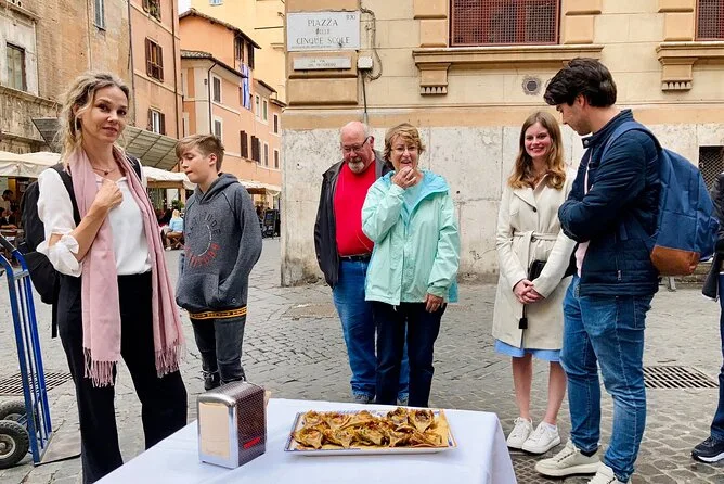 Votre soirée comprend des balades guidées dans des quartiers historiques avec un guide local expert ; plus de 10 dégustations variées comme des spécialités judéo-romaines, pizza margherita accompagnée de bière, charcuteries et fromages de qualité avec vins italiens ; pauses tiramisu aux saveurs multiples ; espresso dans un café romain classique ; gelato bio ; options végétariennes sur demande — le tout ponctué d’histoires que vous ne trouverez dans aucun guide.