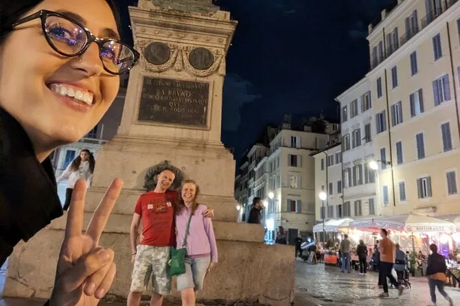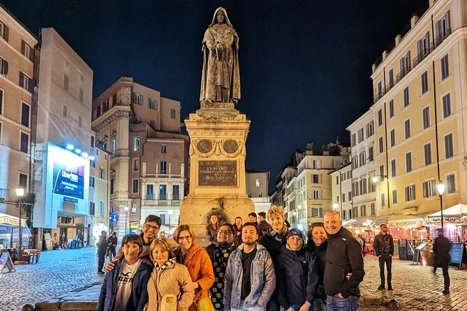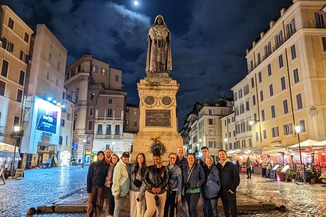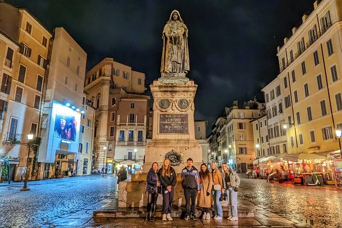 Je ne m’attendais pas à ce que Campo de’ Fiori soit aussi lourd de présence la nuit. Il y avait cette odeur de brûlé, peut-être quelqu’un qui cuisait quelque chose pas loin, ou juste mon imagination qui s’emballait après avoir entendu parler des sorcières brûlées là. Marco nous a raconté des histoires vraies de gens morts dans d’atroces souffrances juste là où nous étions ; il ne les a pas édulcorées ni transformées en film. C’était sincère, parfois presque trop. On a fini près de la Piazza Farnese, avec ses murs de palais sombres, et honnêtement, à ce moment-là, je regardais derrière moi plus d’une fois.