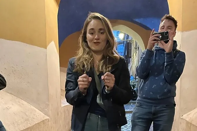 On s’est baladés dans des ruelles étroites qui sentaient la pierre ancienne et la pluie tombée plus tôt. Marco nous a raconté l’histoire de poisonniers dans une place où les fenêtres paraissaient trop calmes pour une ville comme celle-ci. Il a pointé la Via Giulia en plaisantant sur les papes qui se faufilaient en douce — « Personne n’est innocent ici », a-t-il dit en souriant. Les réverbères faisaient scintiller les pavés mouillés et, un instant, j’ai cru voir quelqu’un derrière nous, mais c’était juste un couple qui rattrapait le groupe. C’est là que Marco nous a montré comment utiliser les baguettes. La mienne bougeait à peine, mais celle d’une autre personne tournait à toute vitesse, et elle a reculé en riant (un rire nerveux, je comprends).