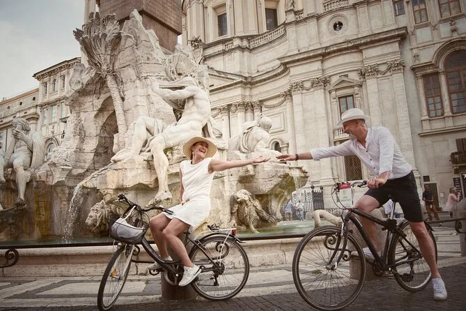 Votre journée comprend un vélo électrique et un casque pour chaque participant (plus sièges enfants ou extensions si besoin), un guide local sympa qui vous emmène sur des itinéraires choisis au cœur de Rome, des ponchos en cas de pluie, et même des réductions spéciales avec votre Roma 'n Bike Card — le tout au départ de la piste cyclable du Tibre pour un accès facile.