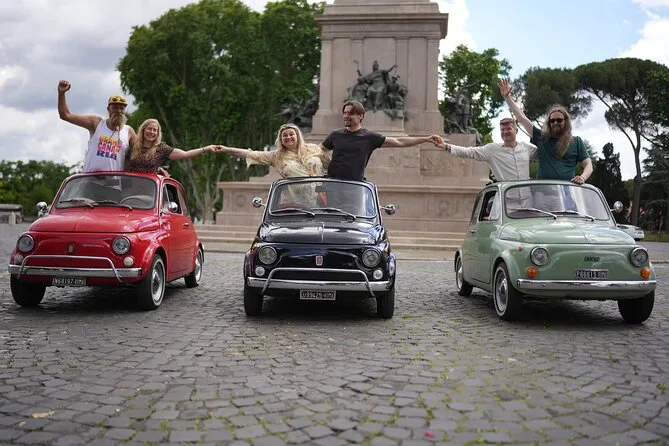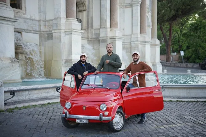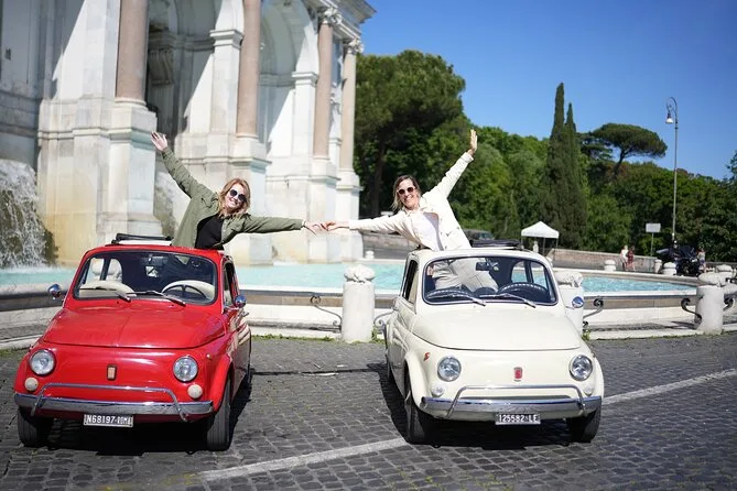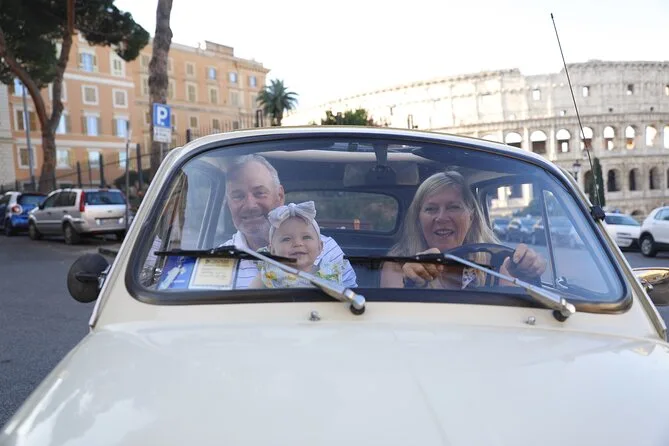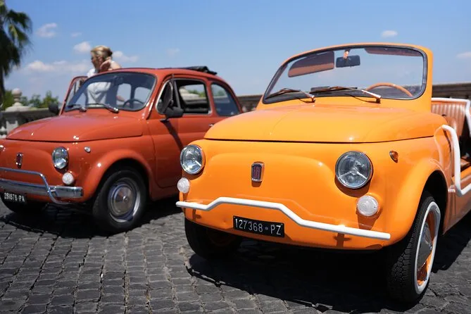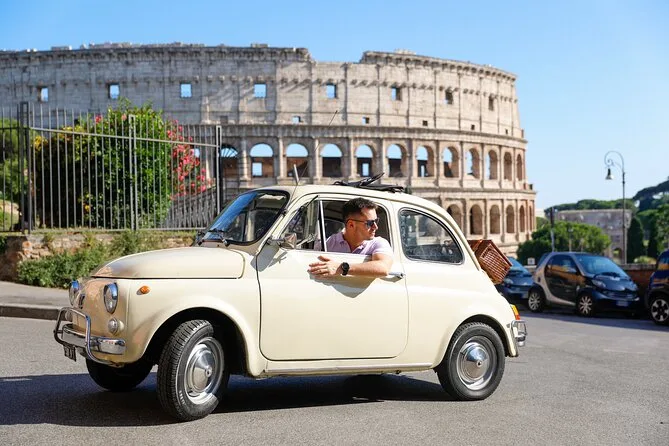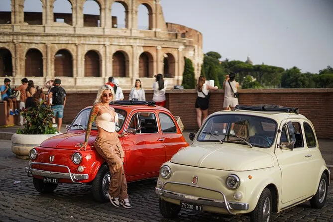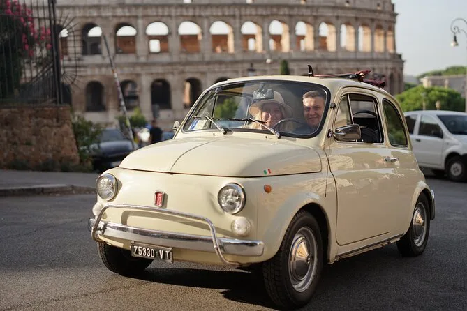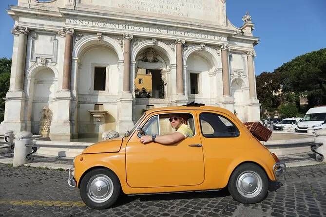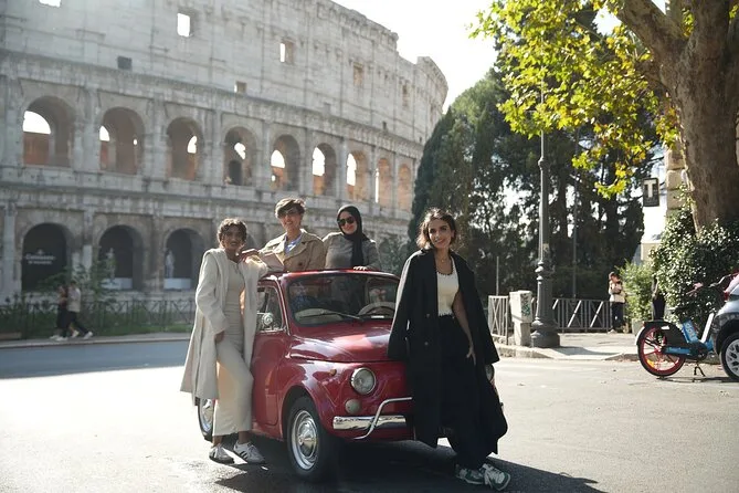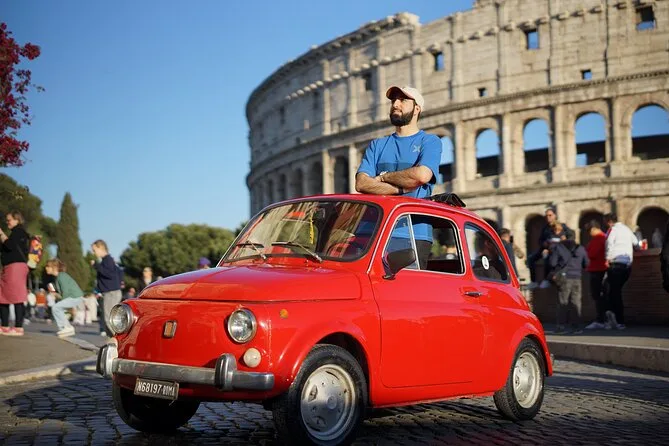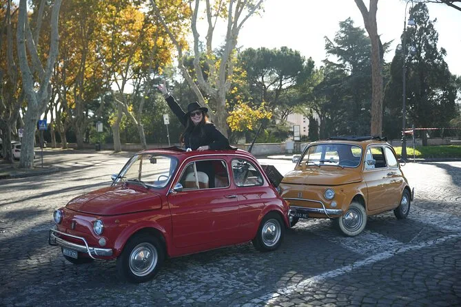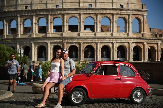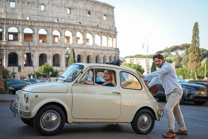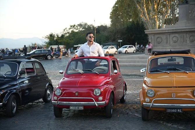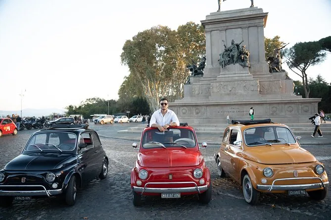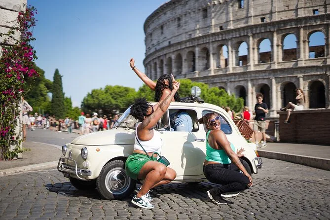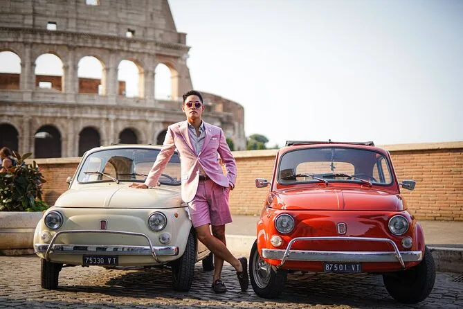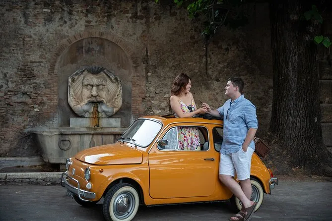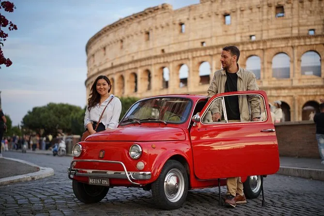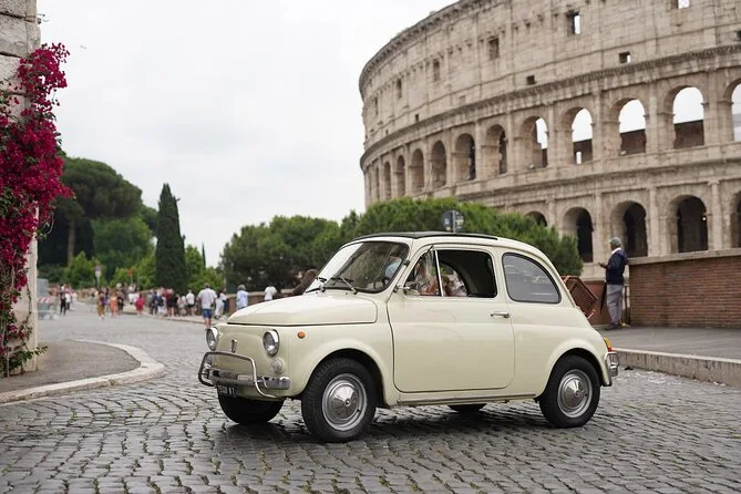 Montez à bord d’une Fiat 500 vintage avec un guide-photographe local et partez à la découverte des ruelles animées de Rome — des pierres millénaires du Colisée aux jardins paisibles de l’Aventin, jusqu’aux vues panoramiques du Gianicolo. Rires, photos naturelles, fleurs d’oranger et petits instants de vie romaine à savourer sans filtre.