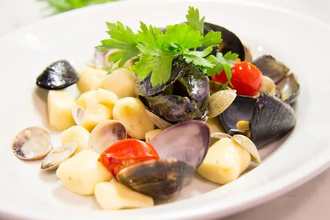 J’ai choisi le menu poisson (impossible de résister après avoir vu ces palourdes), mais deux personnes à côté de moi ont pris le menu végétarien sans rien perdre au goût. On a commencé avec un prosecco accompagné de petites crevettes salées — mes doigts sentaient encore la mer même après m’être lavé. Giulia racontait les astuces de sa nonna pour étaler la pâte à pâtes si finement qu’on pouvait lire un journal à travers (je n’y suis jamais vraiment arrivé). Elle avait ce rire bienveillant quand on se trompait, qui donnait envie de recommencer sans se sentir gêné. À un moment, j’ai essayé de prononcer « scialatielli » correctement ; elle a souri en disant que j’étais déjà assez bon pour un touriste.