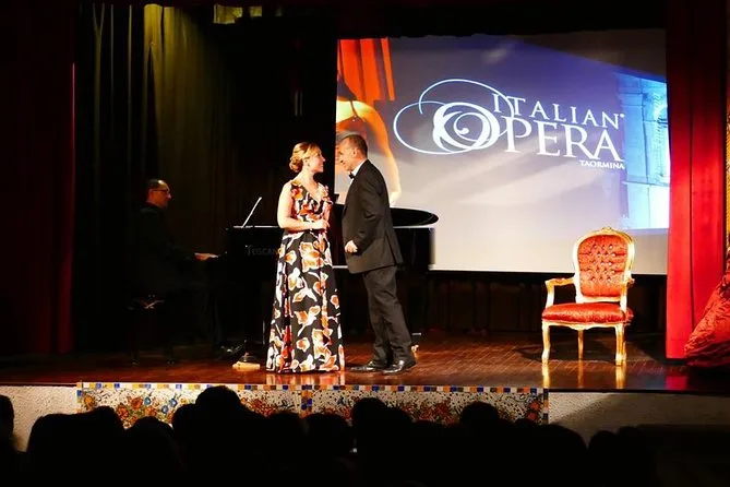 Plongez dans l’ambiance intime du Théâtre Nazarena à Taormina pour une soirée d’opéra italien live au piano — avec des airs célèbres de Verdi et Puccini — tout en sirotant un prosecco sur une terrasse panoramique au coucher du soleil. Des chanteurs locaux donnent vie à chaque note pendant que vous profitez des snacks et de la vue sur la mer. Une soirée à la fois détendue et émouvante, un vrai aperçu des nuits siciliennes inattendues.