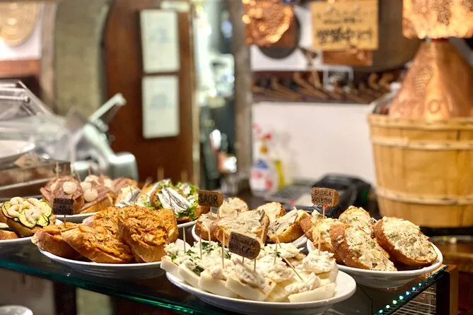 Vous goûterez des cicchetti vénitiens — petites assiettes locales — accompagnés de vins régionaux.