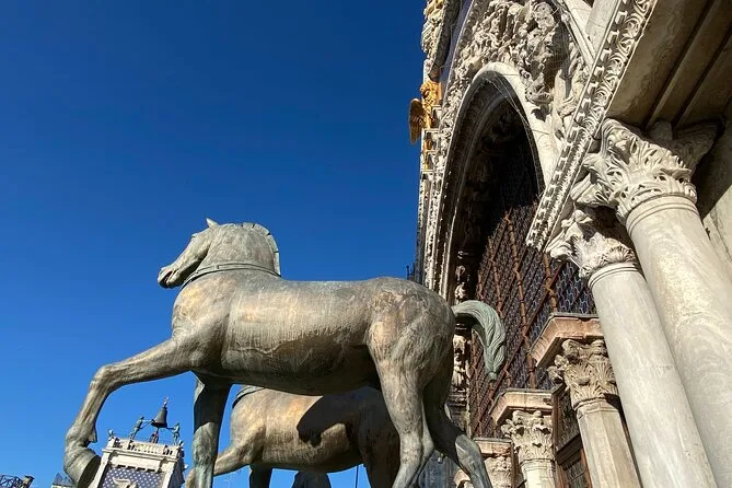 Votre journée comprend trois heures avec un guide local expert dans le cœur historique de Venise, des billets coupe-file pour la basilique Saint-Marc et le Palais des Doges (sans attente), ainsi que l’accès au Musée Correr, au Musée Archéologique National et à la Biblioteca Marciana — le tout à un rythme tranquille en petit groupe.