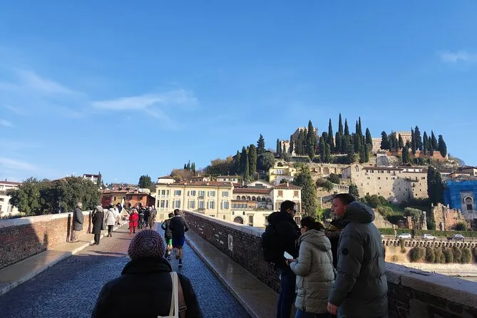 Votre journée comprend une visite guidée en petit groupe avec un expert local dans le centre historique de Vérone, des billets réservés pour l’Arena romaine (sauf fermeture), un billet aller simple en téléphérique jusqu’à la colline Saint-Pierre pour une vue panoramique, ainsi que du temps pour poser vos questions et échanger en toute simplicité pendant la découverte.