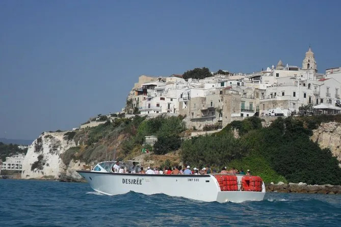 Embarquez pour une croisière le long de la côte sauvage de Gagano à Vieste, entre grottes marines cachées et falaises blanches spectaculaires, avec des anecdotes en direct par votre guide local. Profitez d’une pause baignade à Spiaggia dei Gabbiani — un espresso sur la plage est fortement conseillé — et découvrez des paysages inaccessibles par la route.