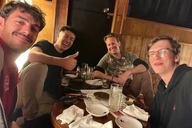 Franchement, j’ai failli rater le groupe parce qu’un artiste de rue près du panneau Glico m’a captivé—il jonglait avec des takoyaki (je vous jure). Notre guide, Yuto, m’a juste souri quand je l’ai enfin rejoint. « Tu arrives pile pour le premier verre », m’a-t-il dit. Tout Dotombori vibrait—du néon partout, cette odeur sucrée-salée des stands d’okonomiyaki flottait dans l’air. On s’est engouffrés dans une ruelle que je n’aurais jamais remarquée seul. Là, tout était plus calme, des lanternes suspendues remplaçaient les panneaux publicitaires. On aurait dit un secret bien gardé d’Osaka.