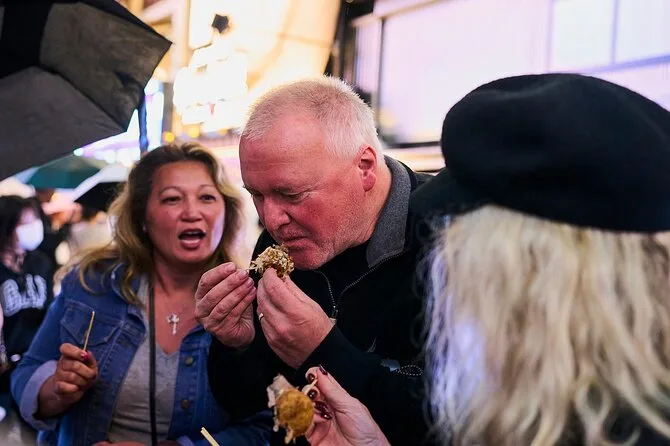 Parcourez les rues animées d’Osaka en dégustant du sushi au thon frais, des gyozas croustillants et des takoyakis reconnus par Michelin. Accompagné d’un guide local, découvrez des bars à saké cachés et faites de nouvelles rencontres. Ce tour, c’est bien plus que manger — c’est s’immerger dans l’âme d’Osaka le temps d’une soirée.