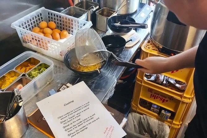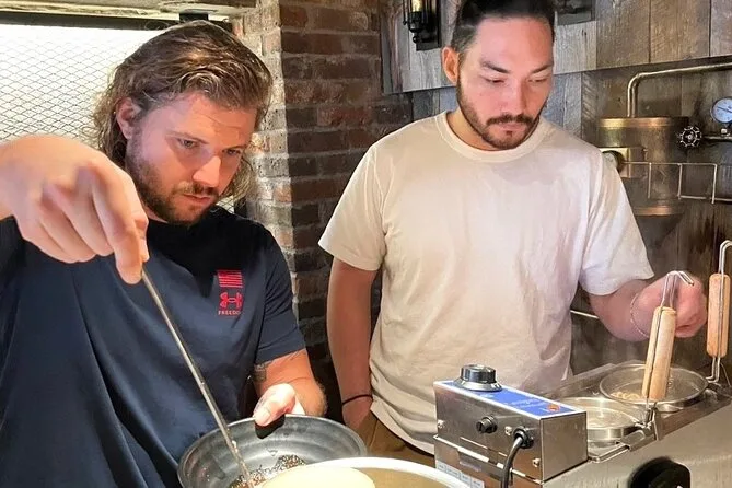 Plongez directement dans la préparation du ramen à Kabukicho avec des hôtes locaux qui vous guident à chaque étape — du choix du bouillon à la cuisson des garnitures en passant par le montage de votre bol. Attendez-vous à des rires malgré la barrière de la langue et à beaucoup de pratique avant de partager un déjeuner convivial. Simple, savoureux, et bien plus qu’un repas.