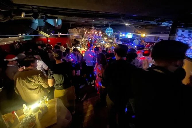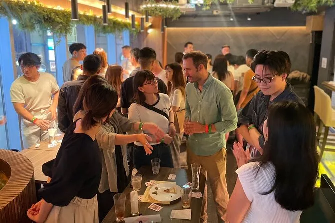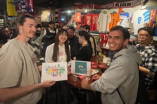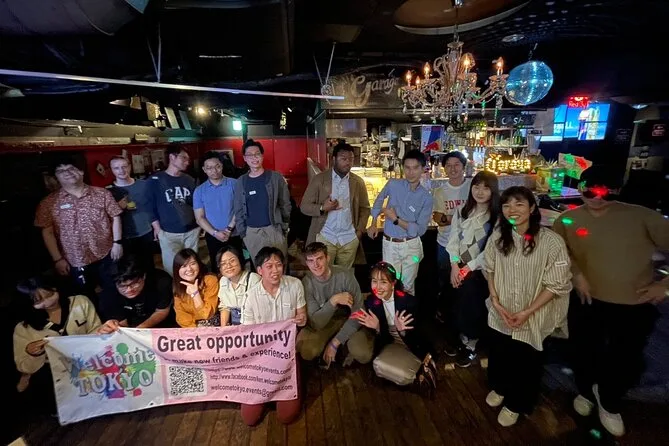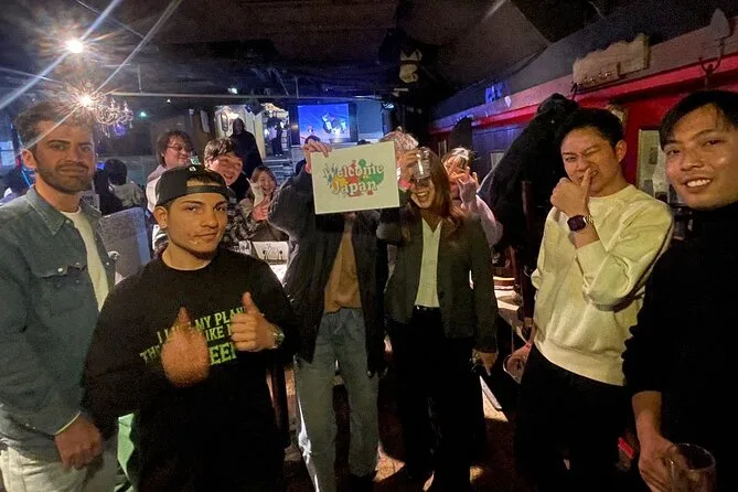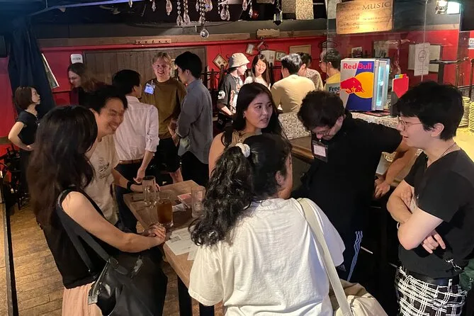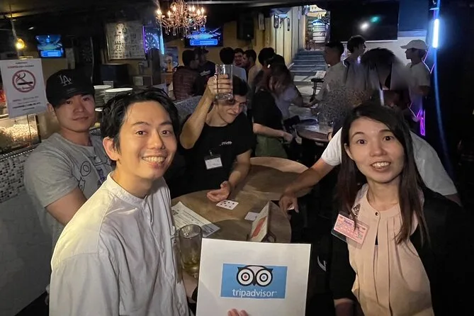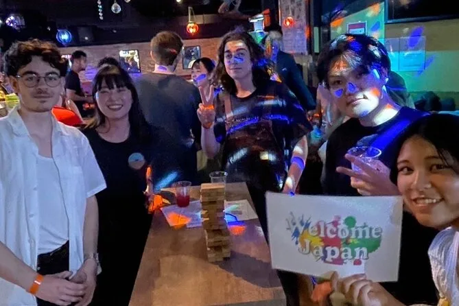 Votre soirée comprend l’entrée dans un bar animé de Shinjuku avec boissons à volonté de 19h30 à 22h, accès à des jeux comme Uno et Jenga, et des hôtes chaleureux pour briser la glace — venez juste prêt à discuter ou jouer avant de replonger dans la vie nocturne tokyoïte.