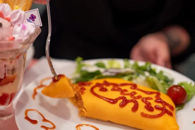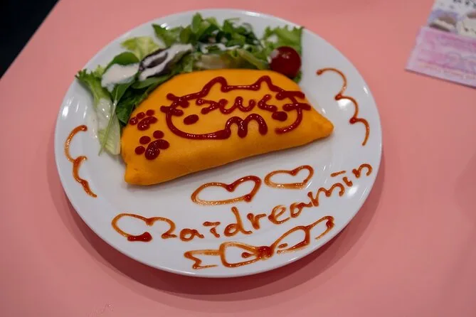 Le café maid, c’était une autre histoire. On entre dans un univers tout rose, froufrous et voix joyeuses qui crient « Okaerinasai ! » (« Bon retour à la maison ! »). La maid qui nous a servis a dessiné un lapin sur mon omelette avec du ketchup — elle a rigolé quand j’ai essayé de dire « kawaii » correctement (c’était raté). Il y a tout un rituel où elles « jettent un sort » sur votre plat pour lui donner plus de goût ; c’est un peu kitsch, mais on finit par sourire sans s’en rendre compte. On a pris des Polaroids avec les maids (supplément si vous en voulez plusieurs), un moment à la fois gênant et touchant.