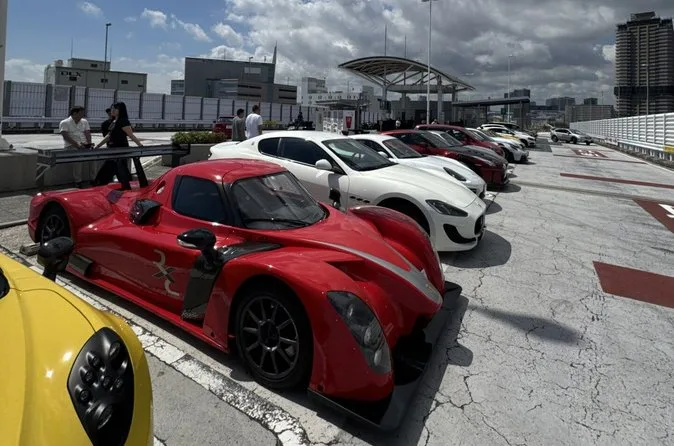 Rejoindre Daikoku sans voiture, c’est compliqué ; ni train ni bus ne desservent vraiment l’endroit. La route elle-même ressemblait à une mission secrète—les néons défilaient en flou, les virages de l’autoroute se resserraient à mesure qu’on approchait. À un moment, notre guide a pointé un petit resto de ramen sous un pont où les locaux font le plein avant les rassemblements. Quand on est enfin arrivés au parking de Daikoku, c’est le son qui a frappé en premier : moteurs qui rugissent, rires qui résonnent contre les piliers en béton, quelqu’un qui balance du vieux J-pop depuis son coffre. Ce n’est pas juste une histoire de voitures—c’est une ambiance qu’on ne peut vraiment vivre qu’en étant là, au cœur du truc.