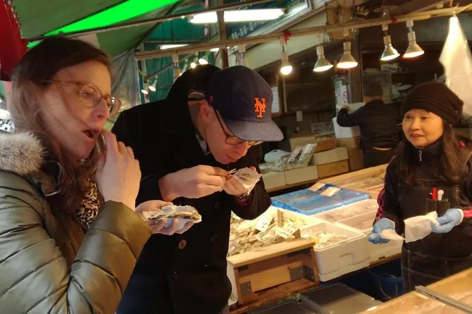 Réveillez-vous tôt pour assister à la mythique enchère de thon à Toyosu, observant les acheteurs se disputer les plus gros poissons depuis la galerie. Puis, suivez votre guide local dans les ruelles animées de Tsukiji, dégustez des snacks de rue et découvrez les secrets du marché. Attendez-vous à une ambiance authentique, des rires autour des erreurs de langue, et un aperçu de la vie culinaire tokyoïte au quotidien.