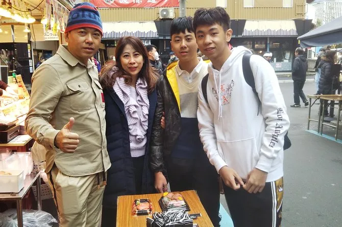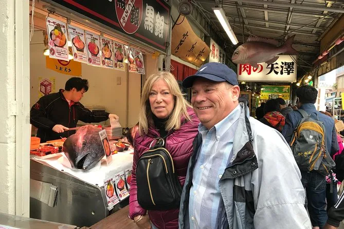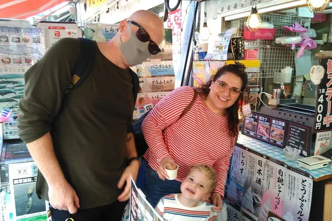 Votre journée commence par la rencontre avec votre guide local anglophone agréé à pied dans le centre de Tokyo pour un départ matinal au marché aux poissons de Toyosu (vue depuis la galerie publique), suivie d’une exploration guidée des ruelles animées du marché de Tsukiji, avant de terminer où vous le souhaitez à proximité — tout est accessible en poussette ou fauteuil roulant si besoin.