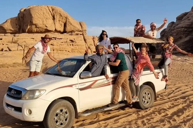 Vous explorerez les sites célèbres de Wadi Rum en jeep, testerez le sandboard sur les dunes rouges, randonnez dans des canyons cachés, admirerez le coucher de soleil avec un thé bédouin, et dormirez sous les étoiles du désert dans un vrai camp bédouin — le tout avec des guides locaux qui connaissent chaque recoin de cet endroit.