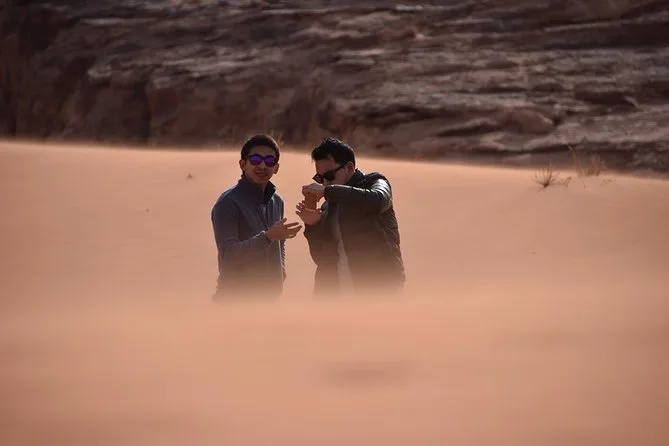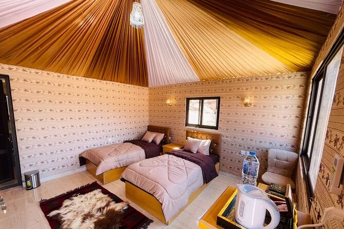 Votre réservation comprend une nuit en hôtel à Amman (petit-déjeuner inclus), une nuit en camp bédouin à Wadi Rum (petit-déjeuner et dîner inclus), de l’eau en bouteille pendant les trajets, une excursion Jeep de deux heures avec des bédouins locaux à Wadi Rum, ainsi que tous les transports avec un chauffeur anglophone en véhicule climatisé. Chaque voyageur ou groupe dispose de sa propre chambre ou tente, sauf demande contraire.